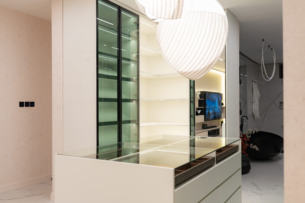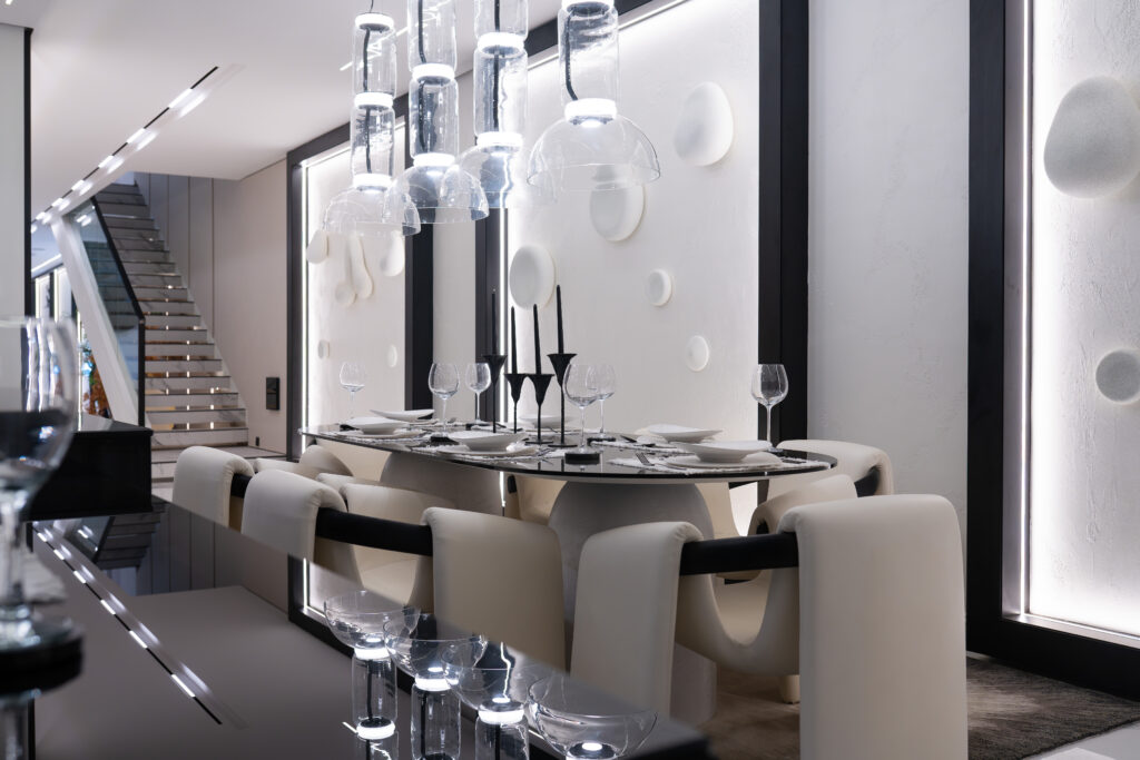 Throughout Project RY, the design language remains consistent neo-futuristic, sculptural, and emotionally grounded. Technology, lighting, and custom detailing are seamlessly integrated, allowing the home to feel forward-thinking without appearing excessive or cold.