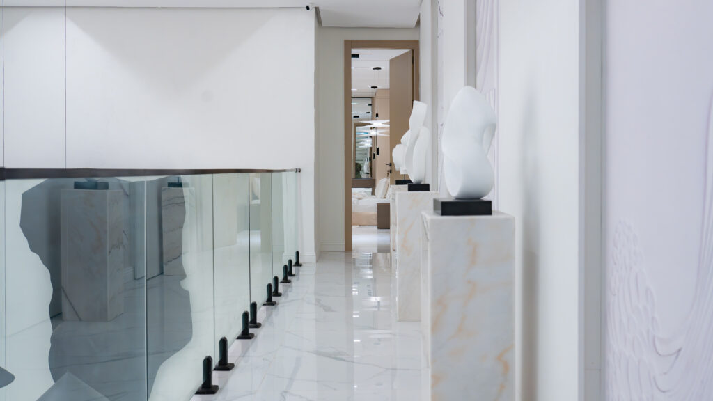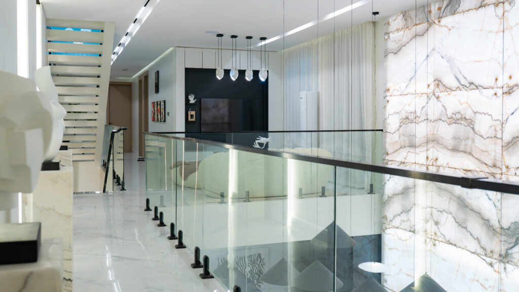 Circulation within the home is elevated through a sculptural passage leading to the Secondary Suite, transforming movement into an experience rather than a transition. Additional lifestyle spaces include a family lounge, private cinema, home gym, and dual rooftop terraces, offering both social and private outdoor experiences.