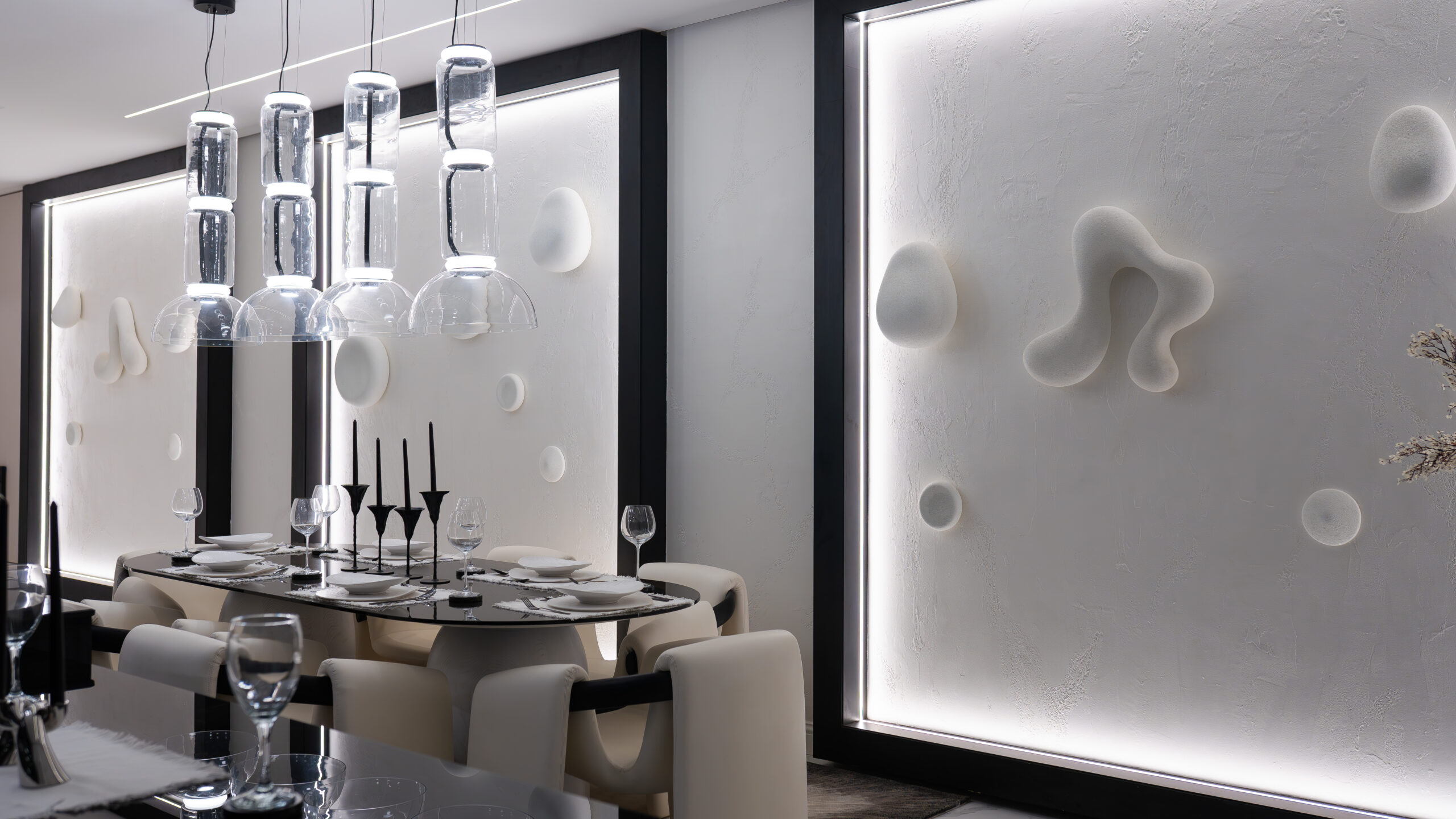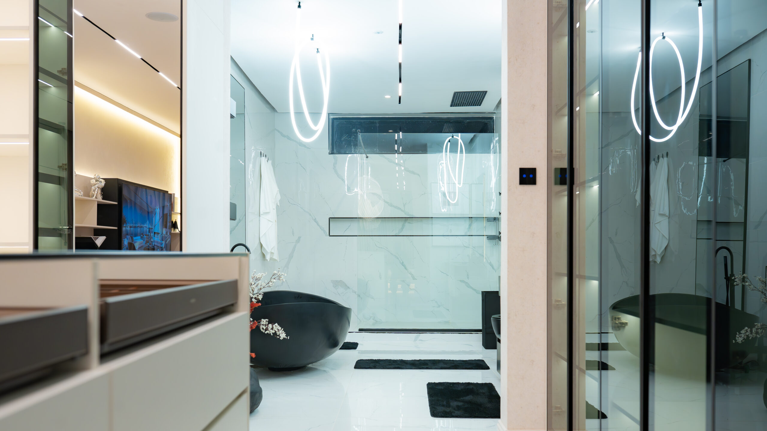 Throughout Project RY, the design language remains consistent neo-futuristic, sculptural, and emotionally grounded. Technology, lighting, and custom detailing are seamlessly integrated, allowing the home to feel forward-thinking without appearing excessive or cold.